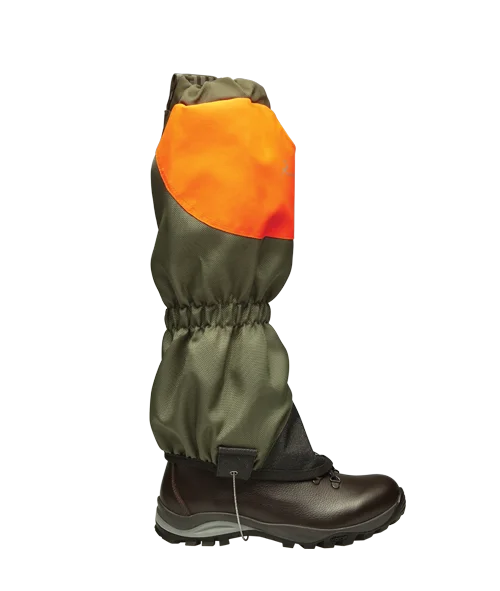 L’inserto arancione ad alta visibilità garantisce maggiore sicurezza durante la caccia in battuta e in tutte le situazioni in cui la visibilità è fondamentale. La cerniera laterale completa, coperta da pattina salva-cerniera con chiusura in velcro e bottone automatico, permette di indossarle e rimuoverle rapidamente anche con scarponi voluminosi.