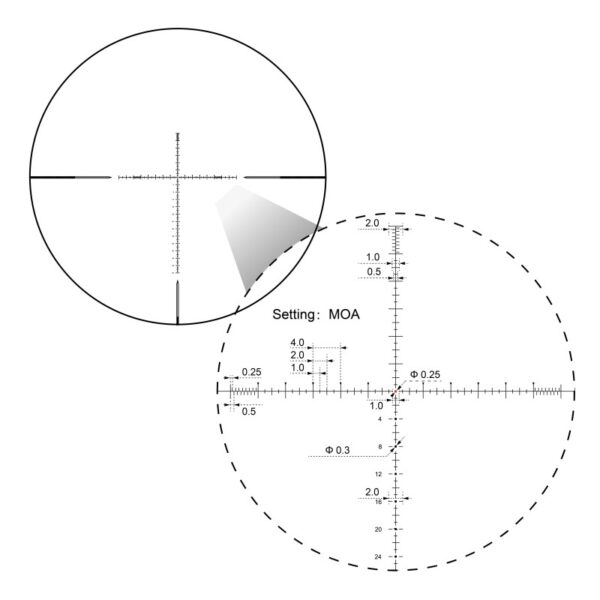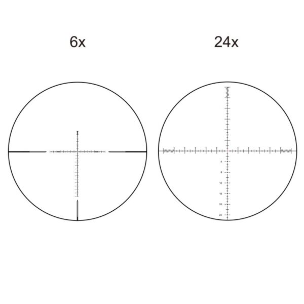 Il reticolo sul primo piano focale (FFP) assicura proporzioni costanti a qualsiasi livello di zoom, garantendo precisione sia nei tiri statici che in movimento. Le lenti Fully Multi Coated (FMC) offrono luminosità e nitidezza, mentre il reticolo illuminato VE-RDF con 6 livelli di intensità la rende adatta a ogni condizione di luce.