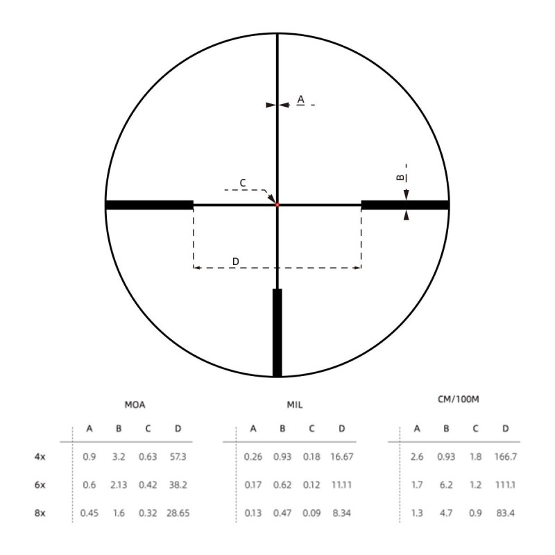 • Regolazioni: 280 MOA (elev.) / 280 MOA (deriva)