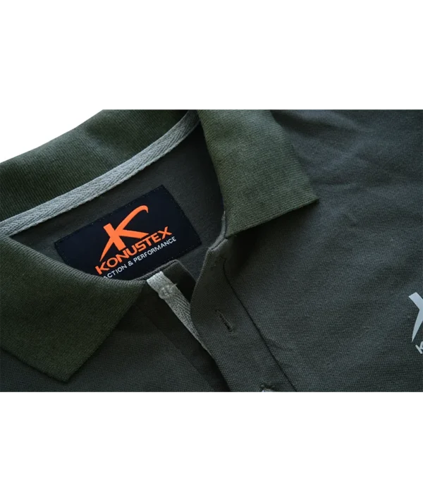 Il colletto e i polsini a costina assicurano una vestibilità comoda e resistente, mentre gli spacchetti laterali e il riporto parasudore migliorano la libertà di movimento e il comfort anche durante l’attività prolungata. La pattina con tre bottoni trasparenti aggiunge un tocco di eleganza funzionale, tipico delle linee Konustex.