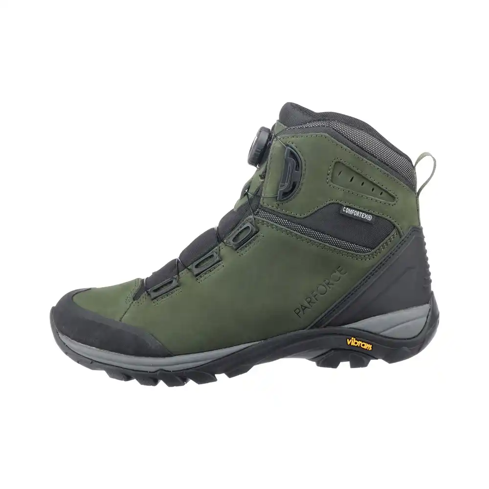 Scarponi da caccia Parforce mid-cut con suola Vibram, membrana Comfortex impermeabile e pratica chiusura a rotore. Resistenti, stabili e comodi su ogni terreno.