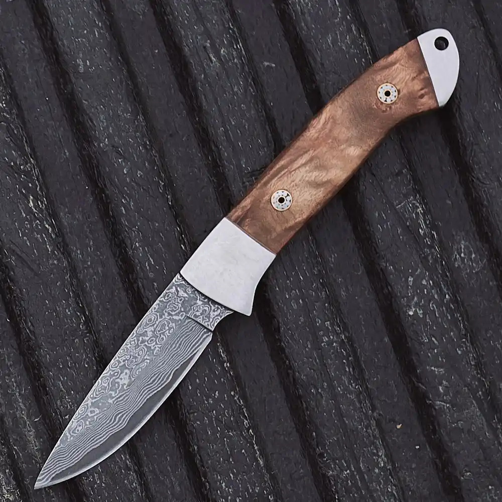 Il coltello pieghevole offre una lama da 6,3 cm e un efficace sistema di blocco back lock, mantenendo lo stesso stile raffinato della versione fissa. Entrambi vengono forniti in una scatola regalo di alta qualità, perfetta anche come idea regalo per appassionati di coltelli e utensili da outdoor.