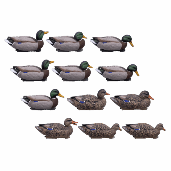 Il set da 12 stampi germano maschio e femmina FULL SIZE FINAL APPROACH riproduce fedelmente i movimenti e le posizioni tipiche di un gruppo di germani in natura, garantendo un richiamo estremamente realistico e credibile.